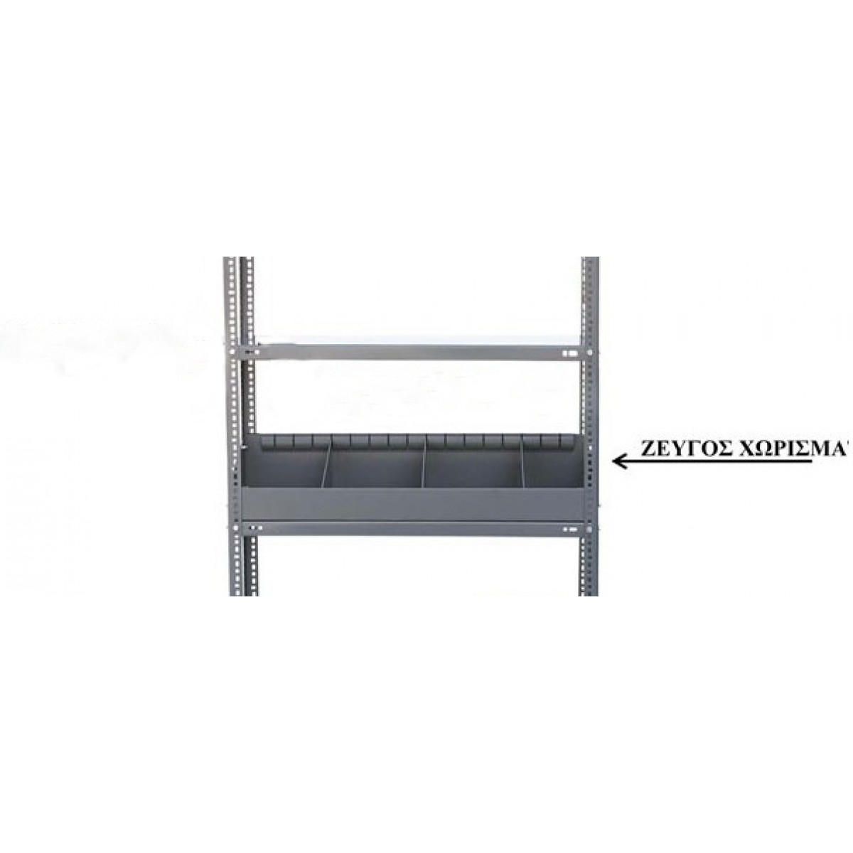 Τα ζεύγη χωρισμάτων είναι ένα πολύ χρήσιμο εξάρτημα για τα ράφια τ. Dexion, αφού μ΄αυτόν τον τρόπο υπάρχει η δυνατότητα να τοποθετηθούν διαφορετικά είδη πραγμάτων στο ίδιο ράφι βάζοντας όσα διαχωριστικά επιθυμείτε. Τοποθετούνται πάνω σε ράφια μήκους 90cm και 122 cm