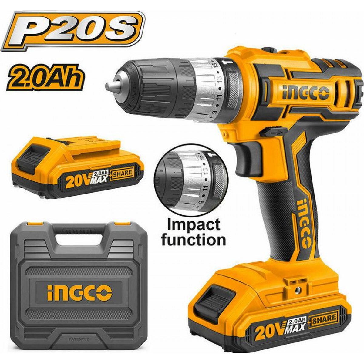 INGCO CIDLI200215 Επαγγελματικό Κρουστικό Δραπανοκατσάβιδο Μπαταρίας 20V Li-Ion ΕΩΣ 6 ΑΤΟΚΕΣ ΔΟΣΕΙΣ