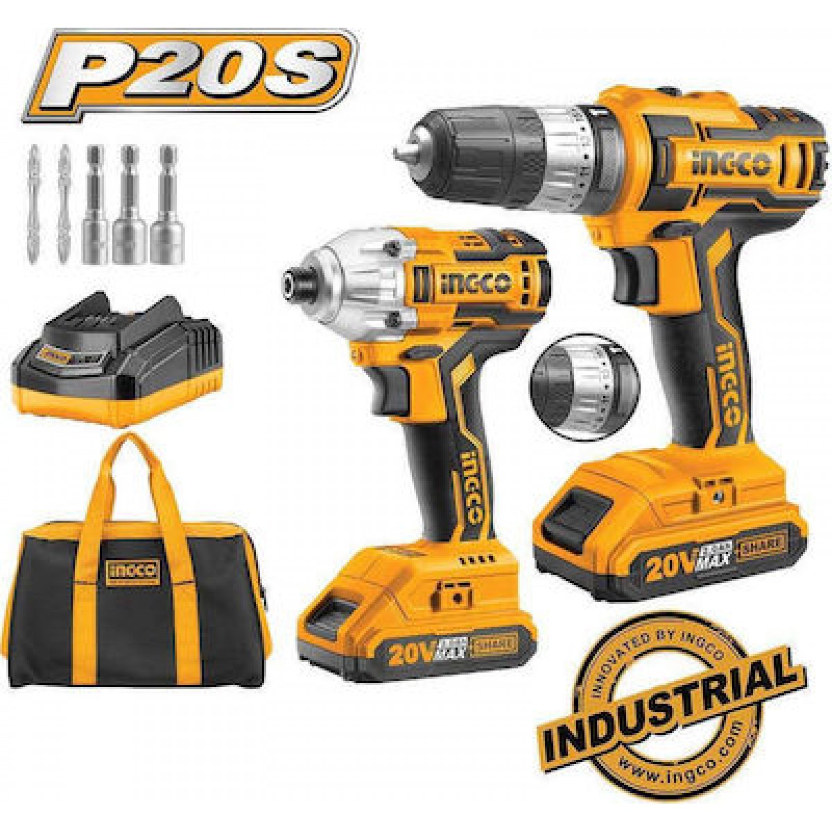 INGCO Σετ 2 τεμ Εργαλεία Μπαταρίας 20V Li-Ion CKLI2006 εως 12 ΑΤΟΚΕΣ ΔΟΣΕΙΣ