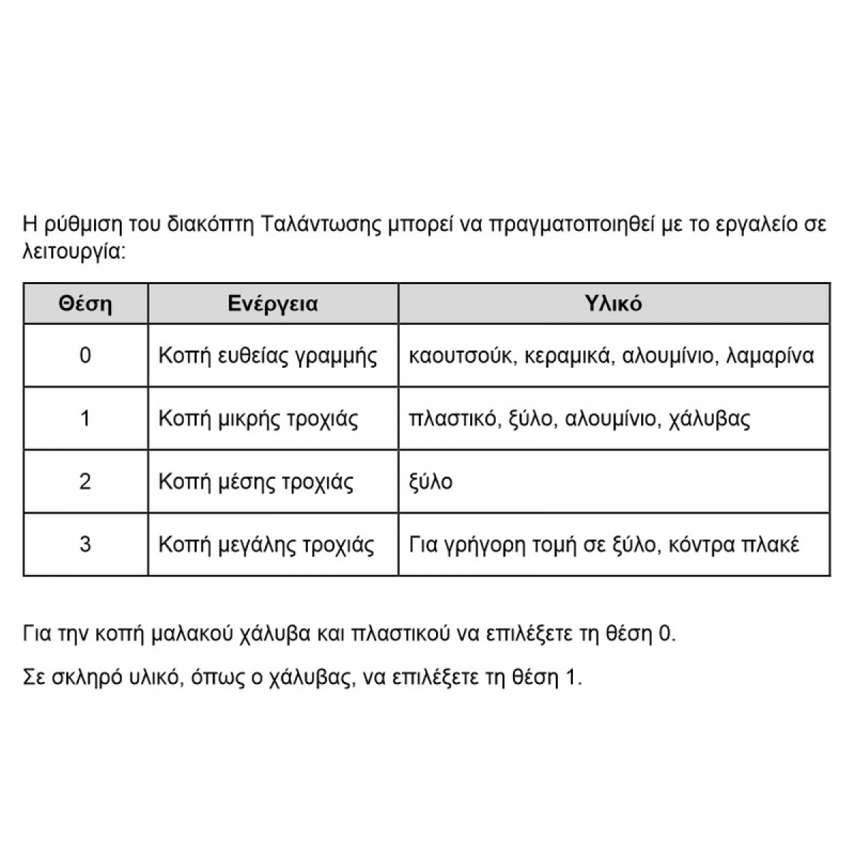 | Δυνατότητα κοπής σε ξύλο | 100 mm |