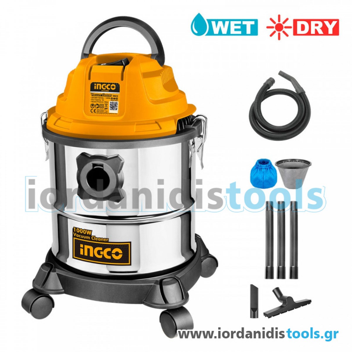 INGCO Ηλεκτρική Σκούπα 1000W Υγρής και Ξηρής Αναρρόφησης