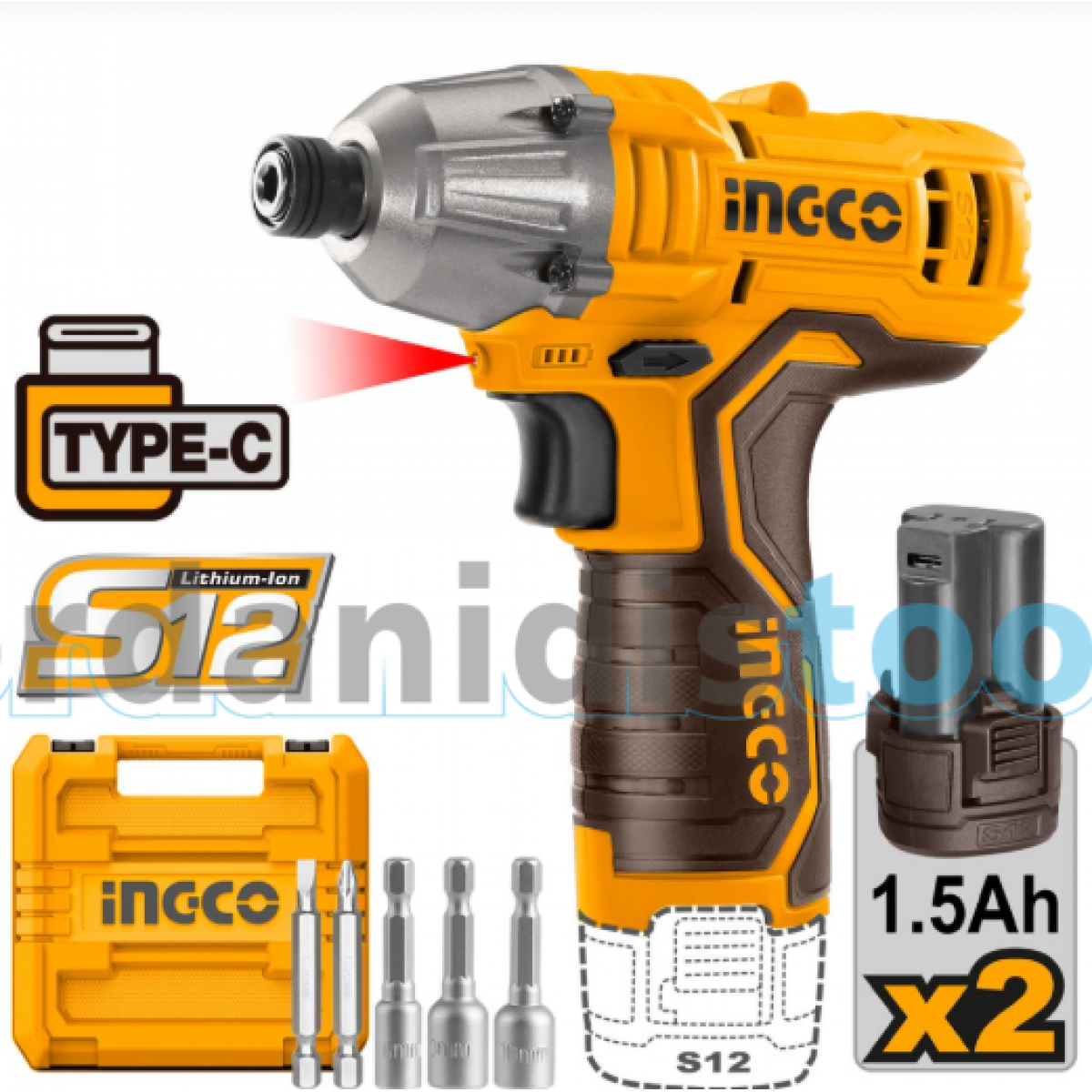 INGCO ΠΑΛΜΙΚΌ ΚΑΤΣΑΒΊΔΙ ΜΠΑΤΑΡΊΑΣ 12V LI-ION USB TYPE-C CIRLI12015