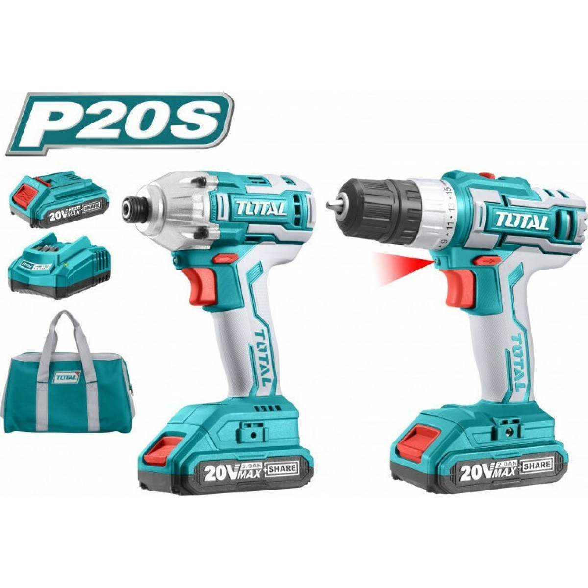 TOTAL Δραπανοκατσάβιδο + Παλμικό Κατσαβίδι Μπαταρίας Λιθίου TCKLI2006