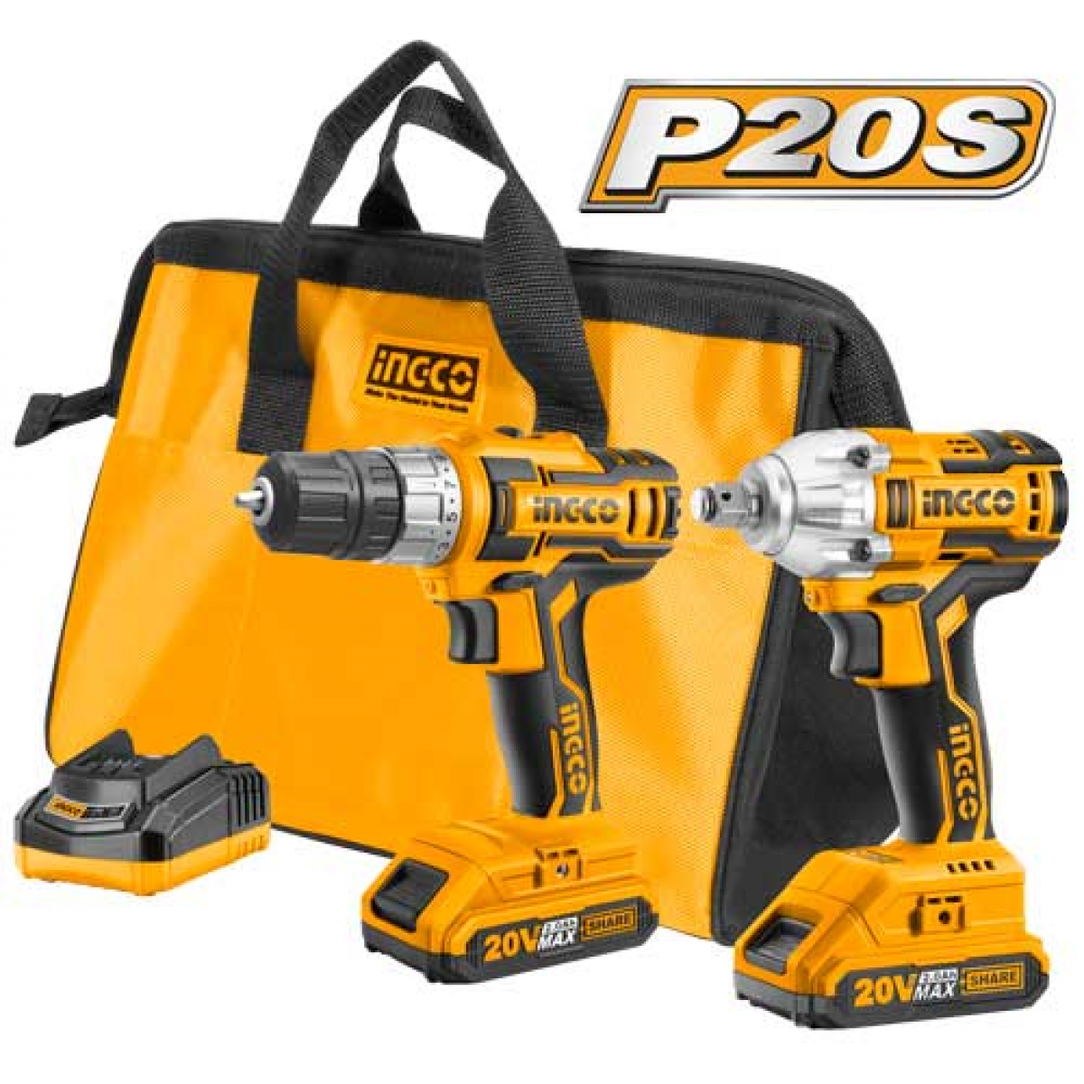 Περιέχει: Φορτιστή 1 ώρας 2 τεμ Μπαταρίες 20V 2.0Ah Li-Ion