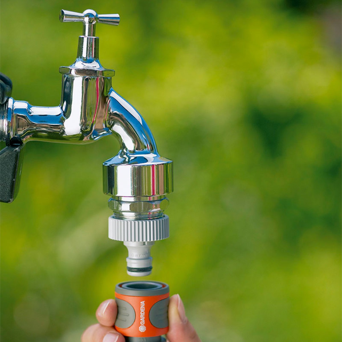 Το Ρακόρ για Βρύσες της GARDENA μπορεί να συνδεθεί σε βρύσες με εξωτερικό σπείρωμα 33,3 mm (G 1").