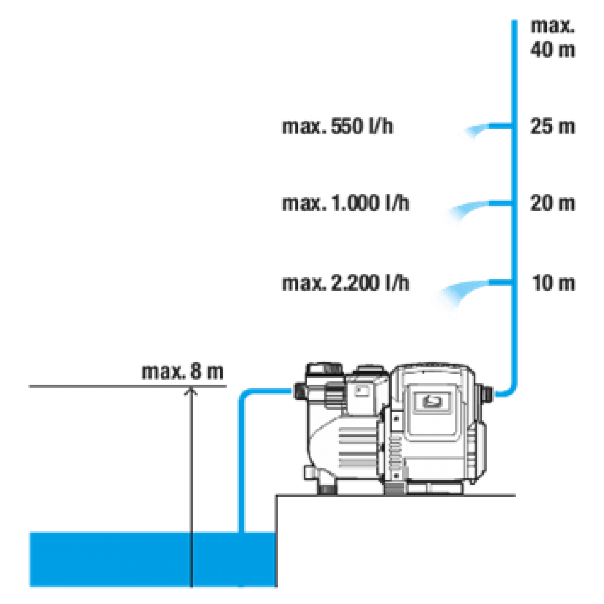 - Το ηλεκτρονικό πιεστικό αυτό συγκρότημα είναι εξοπλισμένο με μια αντλία τύπου Jet, η οποία αντλεί το νερό γρήγορα αξιόπιστα και αθόρυβα. Η βαλβίδα αντεπιστροφής, με την οποία είναι εφοδιασμένο, εγγυάται γρήγορη αναρρόφηση. Το ενσωματωμένο πρόγραμμα λειτουργίας με χαμηλή ποσότητα νερού εξασφαλίζει αξιόπιστη λειτουργία, ακόμη και για μικρές παροχές. Διαθέτει επίσης ένα σύστημα διάγνωσης σφαλμάτων.