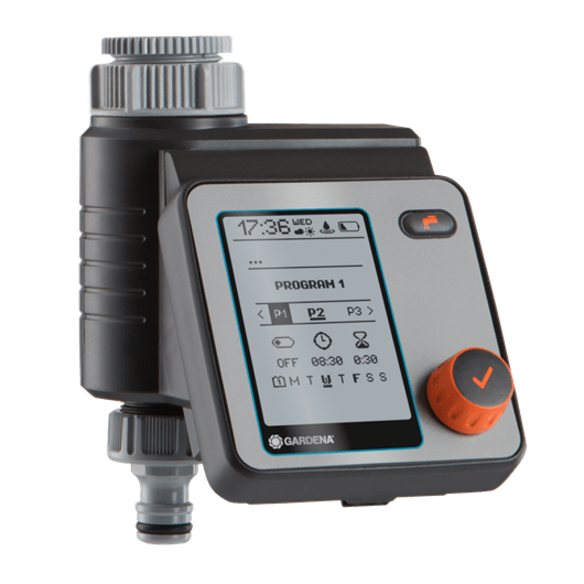 Με τον Προγραμματιστή Μπαταρίας Master της GARDENA, το πότισμα μπορεί να προγραμματιστεί με ευελιξία και ανάλογα με τις ανάγκες της κάθε περιοχής. Μπορούν να δημιουργηθούν έως και έξι διαφορετικοί και ανεξάρτητοι κύκλοι ποτίσματος. Ο προγραμματιστής λειτουργεί με μπαταρία, συνδέεται απευθείας με τη βρύση και λειτουργεί εύκολα χρησιμοποιώντας μόνο έναν διακόπτη, ο οποίος περιστρέφεται για την επιλογή των δεδομένων και πιέζεται για την επιβεβαίωση. Μια ευανάγνωστη οθόνη γραφικών LCD δείχνει όλες τις ρυθμίσεις με μια ματιά. Το μενού μπορεί να επιλεγεί σε 10 γλώσσες. Η μονάδα προστασίας από τις καιρικές συνθήκες μπορεί να αφαιρεθεί. Είναι εύκολο να προσαρμόσετε κεντρικά τη διάρκεια του ποτίσματος ή να διακόψετε όλα τα ποτίσματα στην περίπτωση κακών καιρικών συνθηκών. Η μονάδα είναι ιδανική για τον έλεγχο του Αυτόματου Διανομέα Ποτίσματος GARDENA. Ο Προγραμματιστής Μπαταρίας Master μπορεί επίσης να χρησιμοποιηθεί σε συνδυασμό με ένα Υγρασιόμετρο GARDENA.