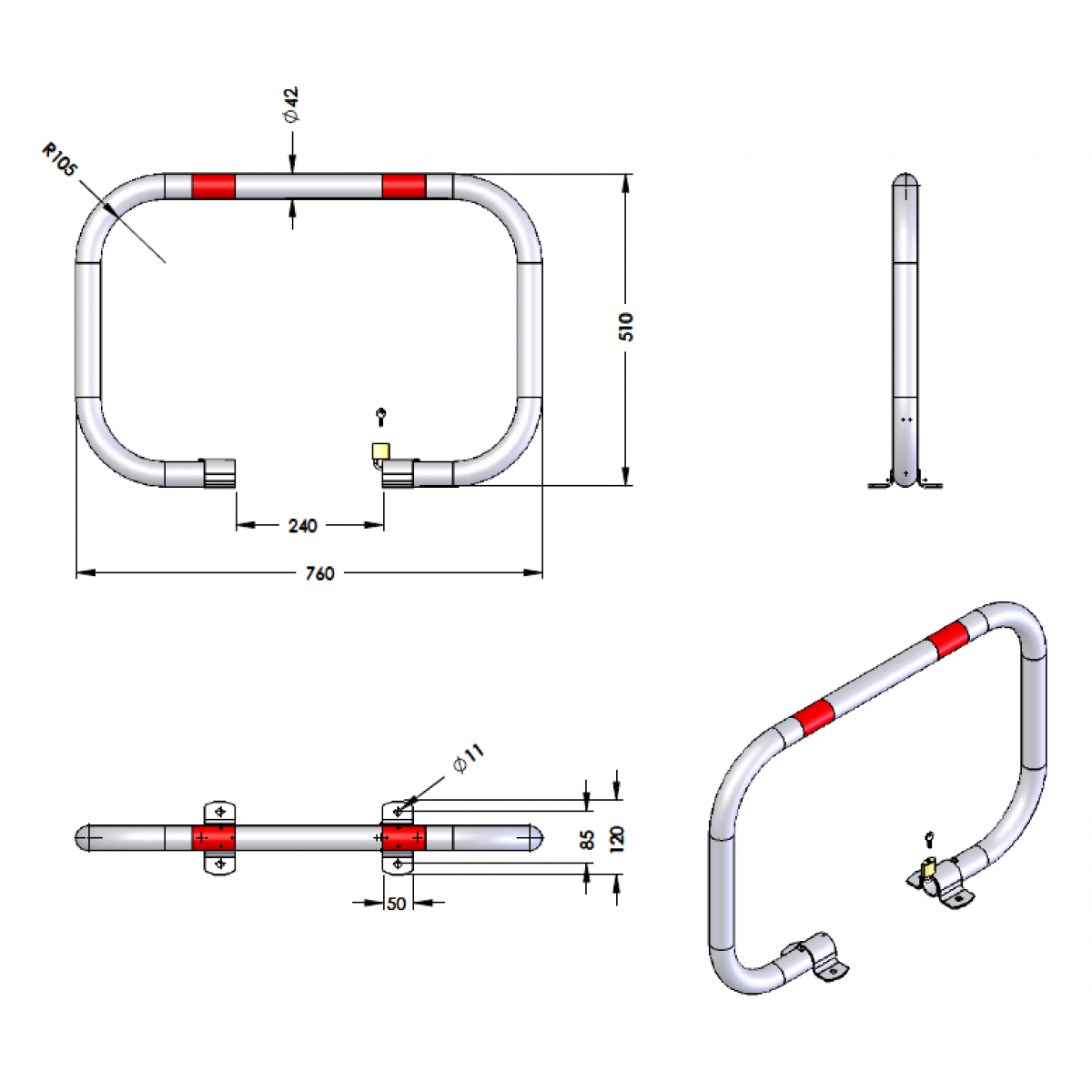 Η μπάρα στάθμευσης σχήματος C με 2 πόδια HSC2L-8050-4218-GAL είναι στιβαρή και αξιόπιστη.