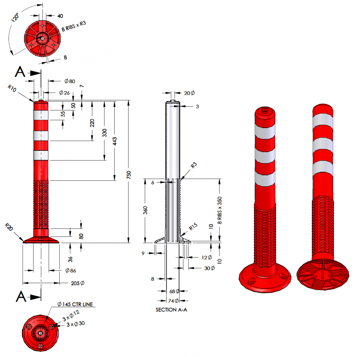 Με το μεγάλο τους ύψος γίνονται εύκολα αντιληπτά από τους οδηγούς λόγω του έντονου χρώματος και των ανακλαστικών ταινιών που διαθέτουν.
