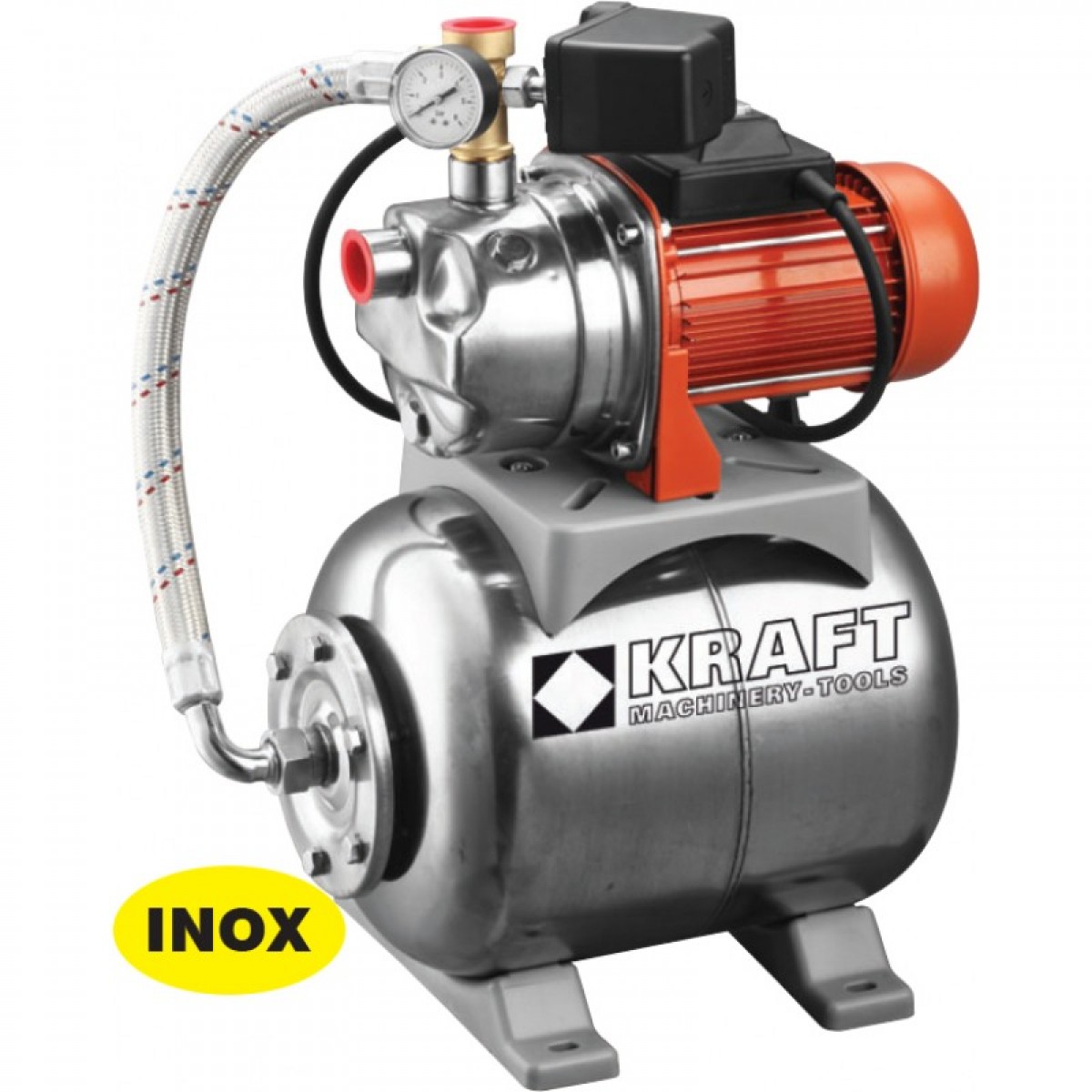 KRAFT Ανοξείδωτο Πιεστικό συγκρότημα με Δοχείο 20Lt & Αντλία 800W 43531