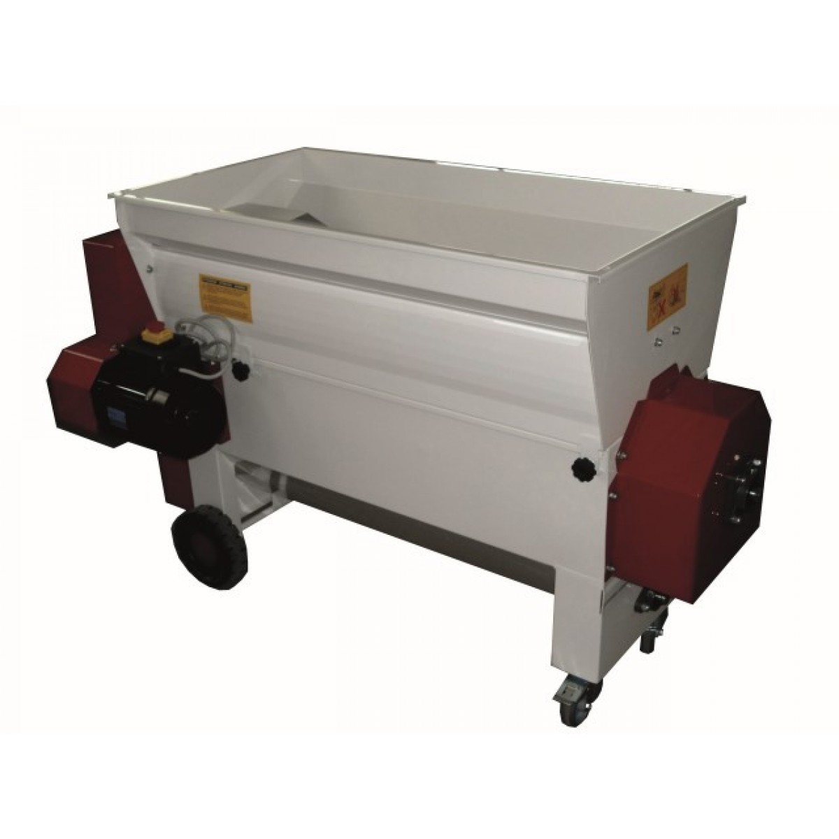 Η περιστροφή του καλαθιού και του άξονα διαχωρισμού γίνονται προς την ίδια κατεύθυνση για να αποφεύγεται το σπάσιμο των μίσχων του σταφυλιού. Ο άξονας διαχωρισμού διαθέτει πτερύγια με ελαστικό περίβλημα. Τα εσωτερικά τμήματα του μηχανισμού μετάδοσης της κίνησης είναι κατασκευασμένα από ανοξείδωτο ατσάλι και πλαστικά ρουλεμάν στήριξης που αντέχουν στη φθορά. Κατασκευή από επισμαλτωμένο σίδηρο. Το καλάθι του διαχωριστήρα και η φυγοκεντρική αντλία είναι κατασκευασμένα από ανοξείδωτο ατσάλι. Το μηχάνημα είναι ανοιγόμενο, τόσο στο κεντρικό τμήμα του όσο και από το πλάι, για την εύκολη εξαγωγή του καλαθιού του διαχωριστήρα και την πραγματοποίηση των εργασιών συντήρησης και καθαρισμού του μηχανήματος με απλό τρόπο.
