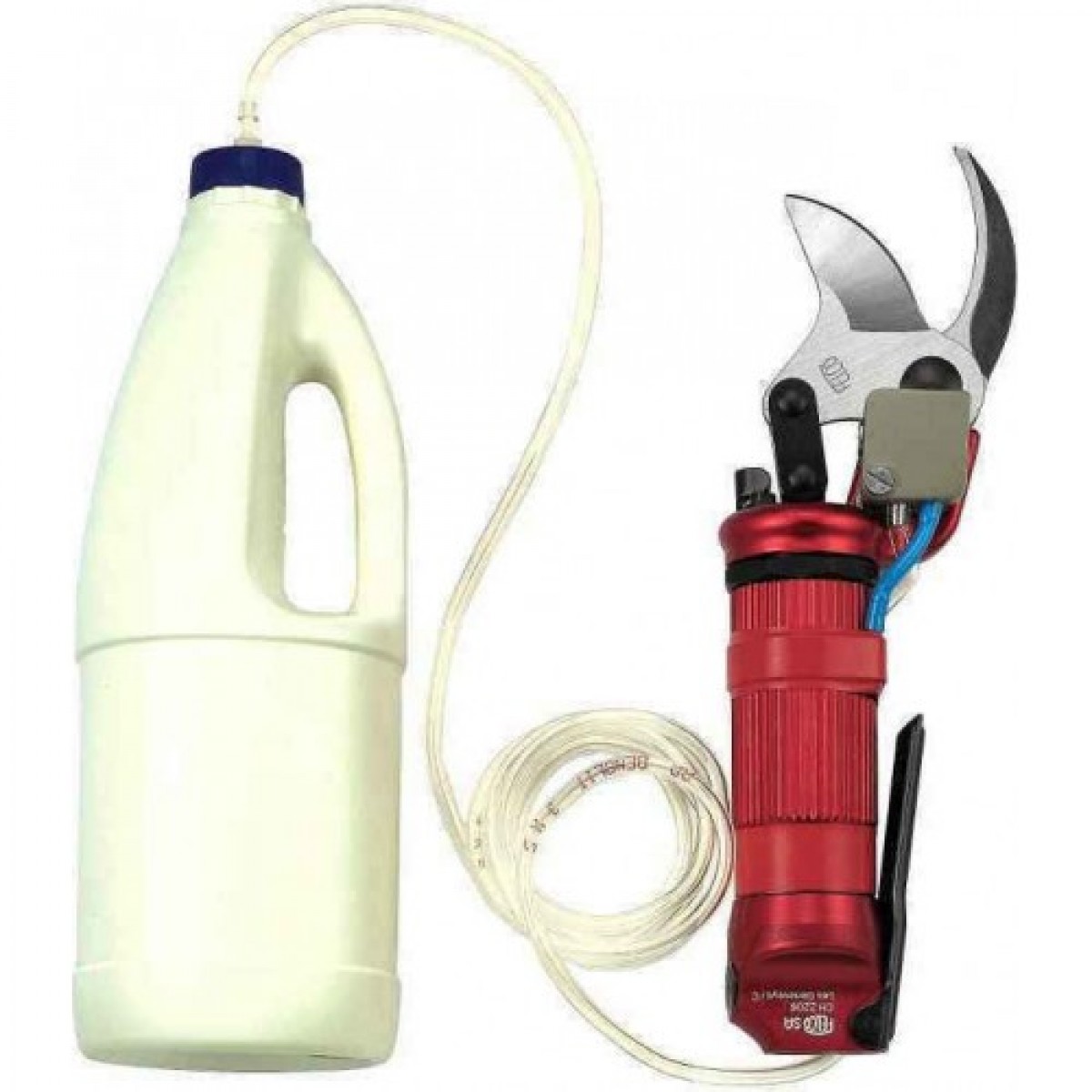 Ψαλίδι κλαδέματος με αέρα, εφοδιασμένο με ειδικό μπεκ ψεκασμού, προσαρμοσμένο στο αμόνι. Η τομή κλαδέματος ψεκάζεται αφού η λεπίδα έχει κόψει το κλαδί και κλείσει. Εάν απαιτείται περισσότερη ποσότητα ψεκαστικού υγρού, απλά κρατήστε πατημένη την σκανδάλη για περισσότερο χρόνο έως ότου επιτευχθεί το επιθυμητό αποτέλεσμα. Η ισχύς λειτουργίας για το ψαλίδι κλαδέματος παρέχεται από έναν αεροσυμπιεστή(δεν περιλαμβάνεται).