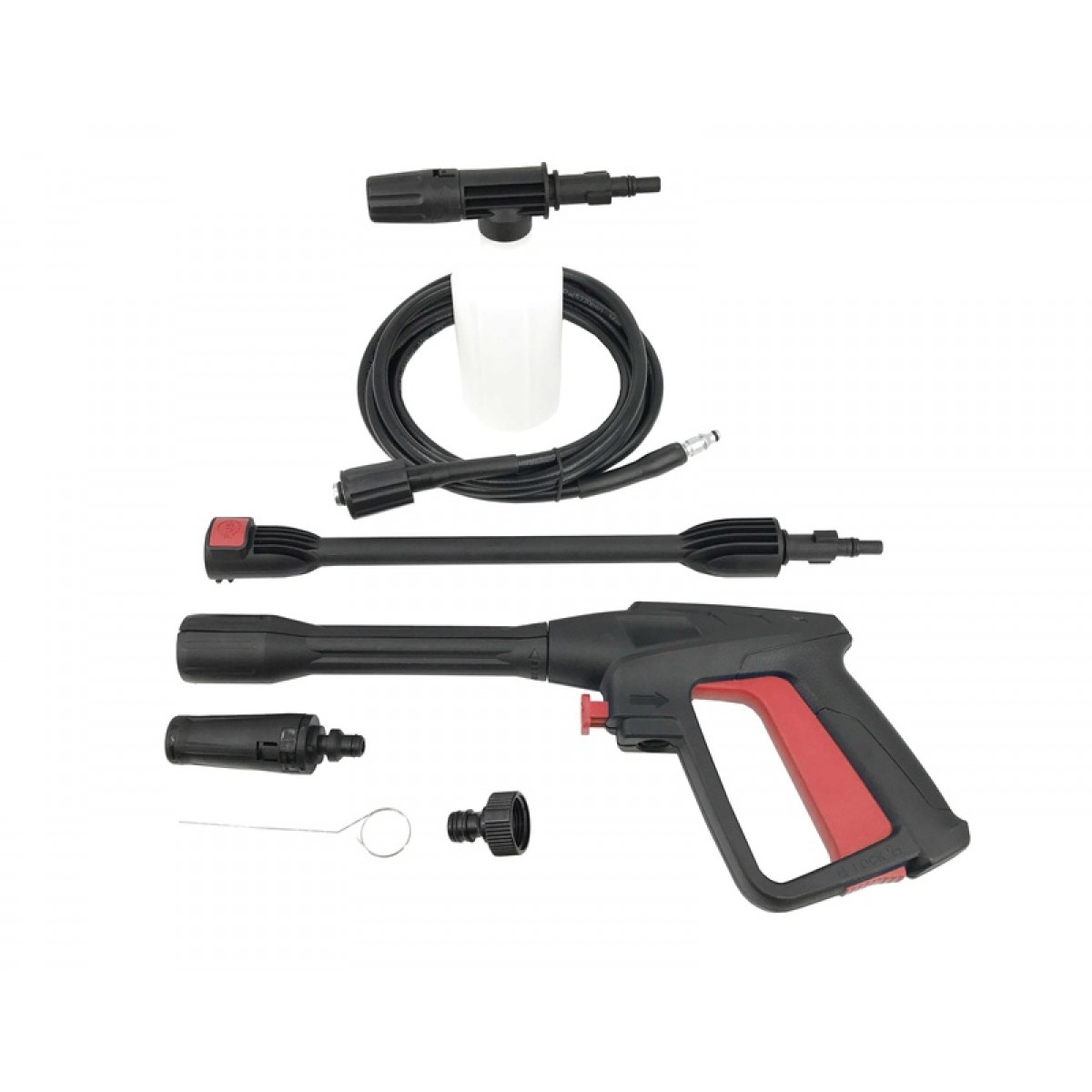 - Περιλαμβάνει Ρυθμιζόμενο Πιστόλι, Λάστιχο 5m, Καλώδιο 5m, Δοχείο Απορρυπαντικού