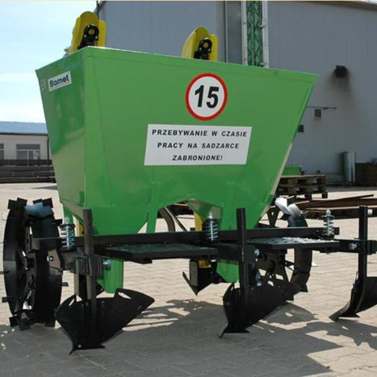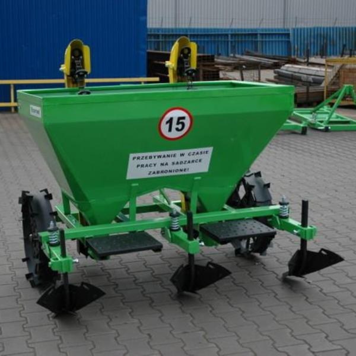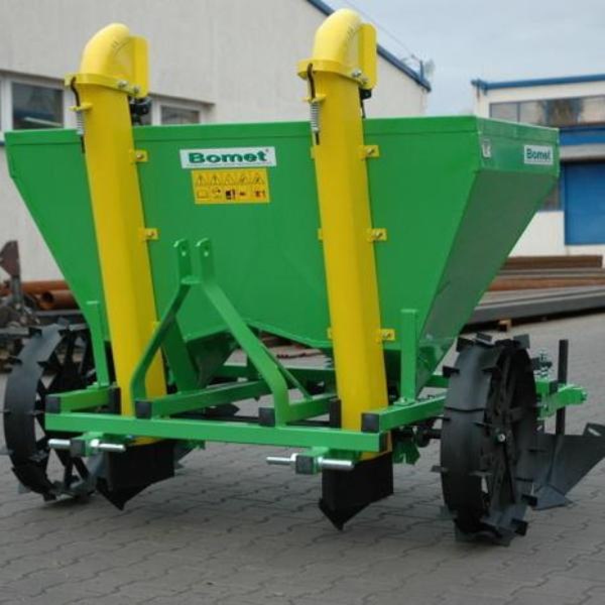 Σπαρτική πατάτας διπλής σειράς που συνδέεται σε τρακτέρ ελάχιστης ιπποδύναμης 38ΗΡ. Η απόσταση μεταξύ σειρών ρυθμίζεται σε 625/675mm. Η απόσταση των αυλακωτήρων ρυθμίζεται σε 625/665mm. Η απόσταση σποράς είναι 29, 32 και 35cm ανάλογα τον μεταλλικό τροχό που θα διαλέξουμε. Με ελαστικούς τροχούς η απόσταση σποράς είναι 32cm. Το βάθος σποράς είναι 10-15cm. Χωρητικότητα δοχείου 180kg. Βάρος 210Kg.