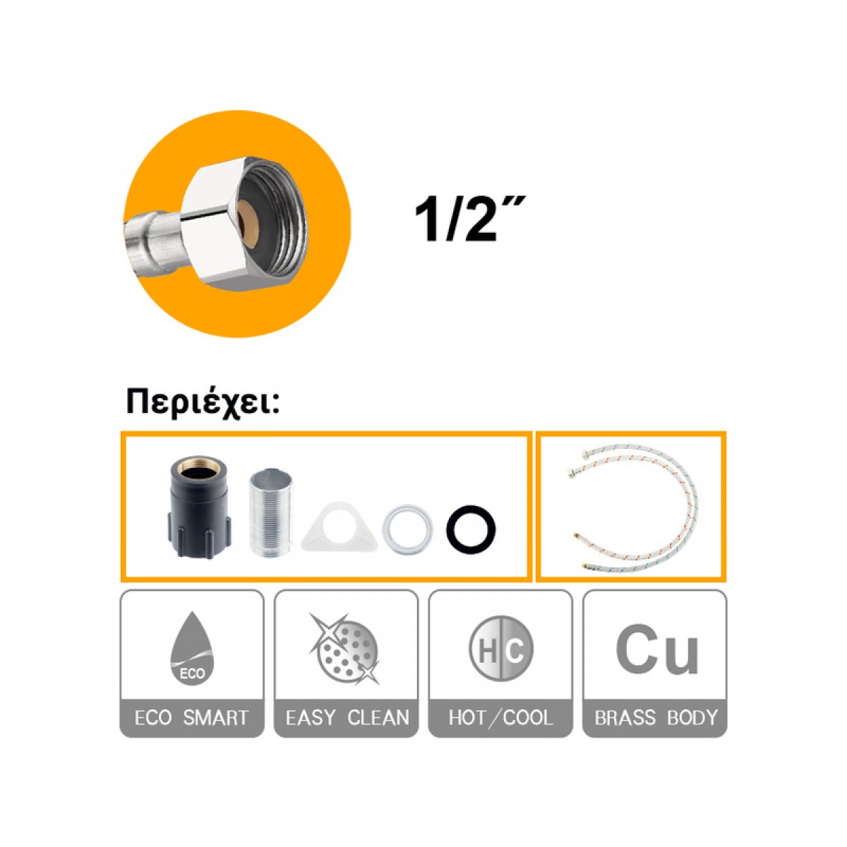 - Είσοδος εύκαμπτου σωλήνα εισαγωγής 1/2"