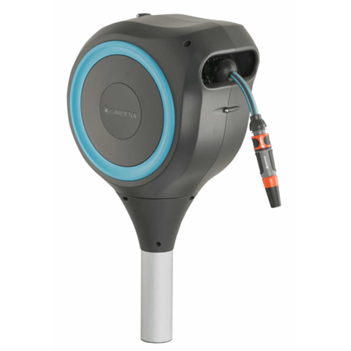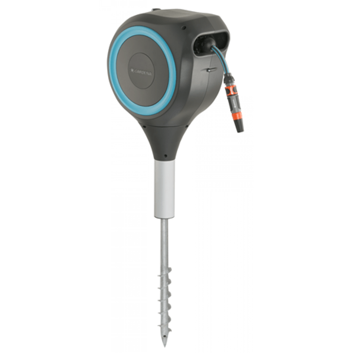 Πότισμα που είναι πάντα έτοιμο για δράση: Το Καρούλι Λάστιχου RollUp Κήπου S δεν είναι ένα συνηθισμένο καρούλι αποθήκευσης λάστιχου. Θα ενθουσιαστείτε με το πόσο εύκολο είναι να ποτίζετε τον κήπο σας με αυτό το καλά σχεδιασμένο καρούλι λάστιχου. Μπορείτε εύκολα να ποτίσετε τον κήπο σας και να έχετε τη μέγιστη ελευθερία κινήσεων. Στηρίζεται σε μια ανθεκτική μεταλλική αρίδα που σημαίνει ότι μπορείτε να την εγκαταστήσετε οπουδήποτε στον κήπο σας χωρίς να καταστρέψετε έναν τοίχο. Η αρίδα γείωσης βιδώνεται στο έδαφος χρησιμοποιώντας μια ράβδο στήριξης και επομένως είναι εξαιρετικά σταθερή. Για χρήση, απλώς επεκτείνετε τον λάστιχο κήπου στα 15 μέτρα το μέγιστο και μπορείτε να αρχίσετε αμέσως το πότισμα. Τα ενσωματωμένα σημεία κλειδώματος διασφαλίζουν τον αβίαστο χειρισμό και στερεώνουν αυτόματα το λάστιχο στο επιθυμητό μήκος επέκτασης. Χάρη στον πρωτοποριακό σχεδιασμό, το καρούλι λάστιχου μπορεί να περιστραφεί κατά 360 ° και μπορείτε να φτάσετε σε κάθε γωνιά του κήπου σας. Το καρούλι λάστιχου ακολουθεί τις κινήσεις σας ενώ ποτίζετε και εμποδίζει το λάστιχο του νερού να τσακίσει ή να μπλέξει. Επιπλέον, σας σώζει από την επίπονη εκκίνηση, την κάμψη και τα βρεγμένα, βρώμικα χέρια κατά την κύλιση: Μια έλξη στον ξετυλιγμένο λάστιχο ενεργοποιεί το ενσωματωμένο ελατήριο, το οποίο επαναφέρει λάστχιχο πλήρως αυτόματα και αξιόπιστα. Για να διασφαλιστεί ότι δεν υπάρχει μπλοκάρισμα ή ανατροπές, ένας οδηγός λάστιχου και η τεχνολογία RollControl εξασφαλίζει ασφαλή και ελεγχόμενη επανατύλιξη. Το καρούλι προσαρμόζεται στο ύψος των ρομποτικών της GARDENA, έτσι ώστε το γκαζόν γύρω από το καρούλι λάστιχου να κουρεύεται πάντα. Το υψηλής ποιότητας υλικό προστατεύεται από την υπεριώδη ακτινοβολία και τον παγετό, το καρούλι μπορεί να παραμείνει στον κήπο όλο το χρόνο και σας εγγυάται μεγάλη διάρκεια ζωής και χρήση χωρίς συντήρηση. Είναι ιδιαίτερα συμπαγές και κομψά σχεδιασμένο έτσι ώστε να μπορεί να ενσωματωθεί εύκολα σε οποιονδήποτε κήπο. Το Καρούλι Λάστιχου διαθέτει λάστιχο σύνδεσης, όλα τα απαραίτητα εξαρτήματα συναρμολόγησης και αυθεντικά εξαρτήματα συστήματος GARDENA, καθώς και ένα ακροφύσιο με δύο διαφορετικά συστήματα ψεκασμού. Η GARDENA παρέχει πενταετή εγγύηση στο Καρούλι Λάστιχου RollUp Κήπου S .