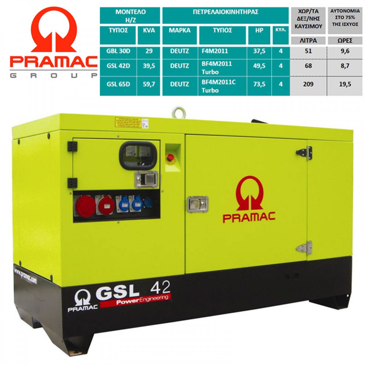 PRAMAC Γεννήτρια Πετρελαίου 1.500 στρ./λεπτό 39,5 KVA GSL 42D εως 24 ΑΤΟΚΕΣ ΔΟΣΕΙΣ