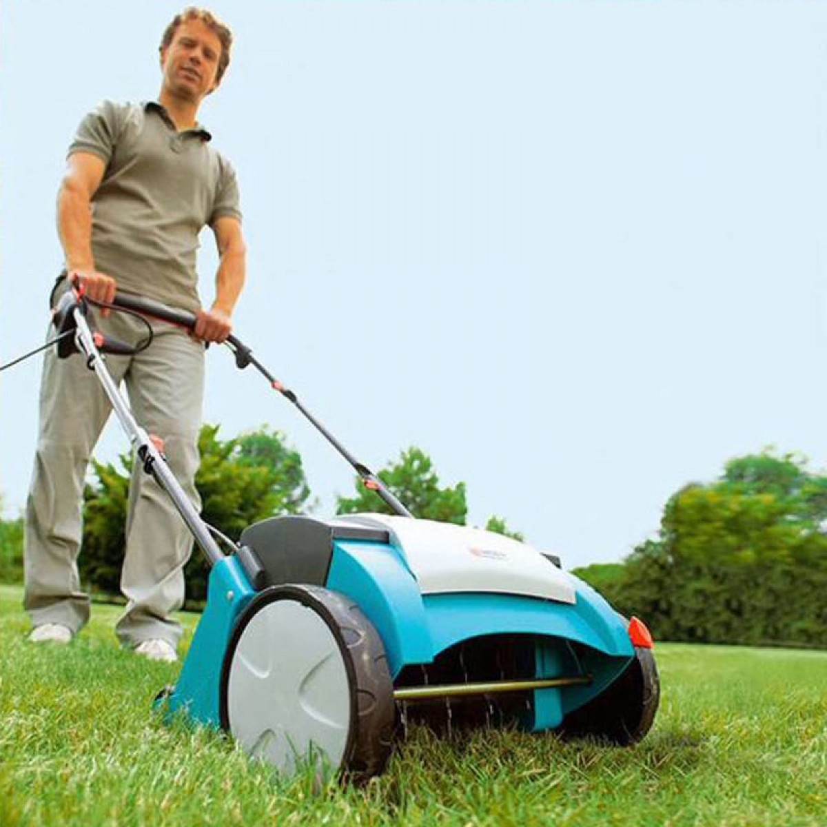 Με τον Ηλεκτρικό εξαερωτήρα GARDENA EVC 1000, μπορείτε να αφαιρέσετε βρύα, νεκρά στελέχη και ζιζάνια, βελτιώνοντας καθοριστικά με τον τρόπο αυτό την απορρόφηση του αέρα, του νερού και των θρεπτικών στοιχείων από το γκαζόν. Αιχμηρές λεπίδες με απόκλιση, κατασκευασμένες από ειδικά σκληρυμένο, γαλβανισμένο ανοξείδωτο χάλυβα, διαπερνούν το γκαζόν κατά χιλιοστά και αφαιρούν τα ανεπιθύμητα ξερά στελέχη και τη νεκρή χλόη από το χώμα. Το βάθος στο οποίο οι λεπίδες διεισδύουν στο έδαφος ρυθμίζεται εύκολα με έναν πρακτικό μοχλό ελέγχου. Χάρη στο πανίσχυρο μοτέρ PowerPlus, μπορείτε να εργαστείτε χωρίς διακοπή και να εκκινήσετε τον εξαερωτήρα οποιαδήποτε στιγμή χωρίς προβλήματα. Οι μεγάλοι τροχοί με ειδικό πέλμα διευκολύνουν την καθοδήγηση και επιτρέπουν την καλύτερη πρόσφυση στο γκαζόν. Για ευχάριστη ώθηση του εξαερωτήρα, η λαβή οδήγησης είναι εξοπλισμένη με βολικό διακόπτη. Επίσης, για τη μετακίνηση στο σημείο χρήσης, υπάρχει η θέση μεταφοράς στην οποία οι λεπίδες διπλώνουν εύκολα και γρήγορα. Πρακτικό: η λαβή του ηλεκτρικού εξαερωτήρα γκαζόν μπορεί να αφαιρεθεί γρήγορα, για εξοικονόμηση χώρου αποθήκευσης και εύκολη μεταφορά. Συμβουλή: Ο εξαερισμός είναι μια φροντίδα σε βάθος για το γκαζόν και συνιστάται να γίνεται μια φορά την άνοιξη/φθινόπωρο.