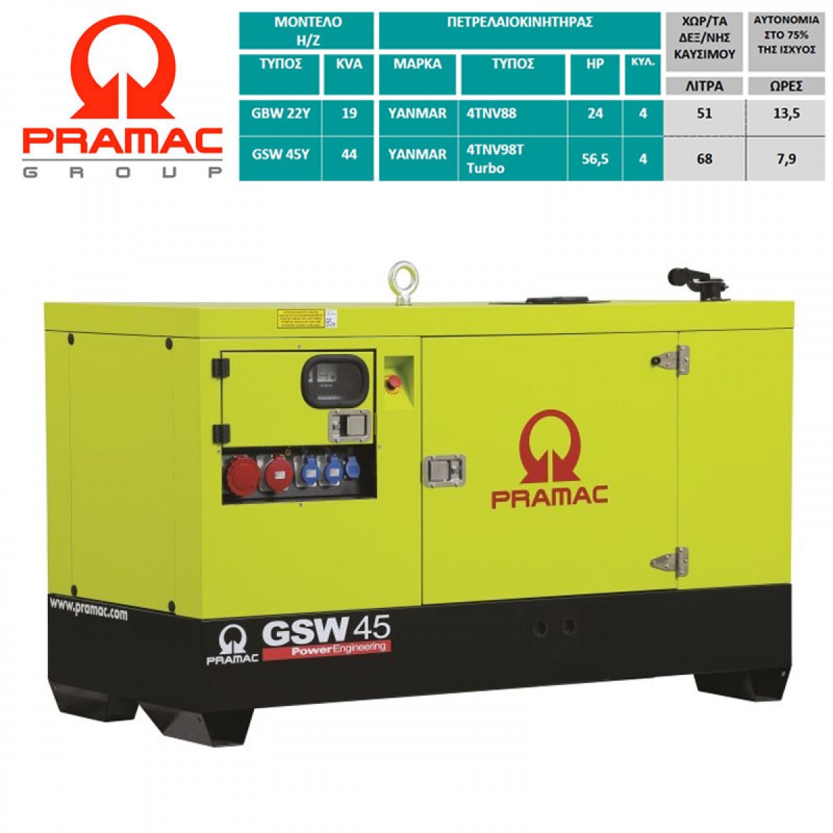 Ηλεκτροπαράγωγο ζεύγος πετρελαιοκίνητο υδρόόψυκτο τριφασικό PRAMAC Ιταλίας & κινητήρα YANMAR Κλειστού τύπου 1.500 στρ./λεπτό