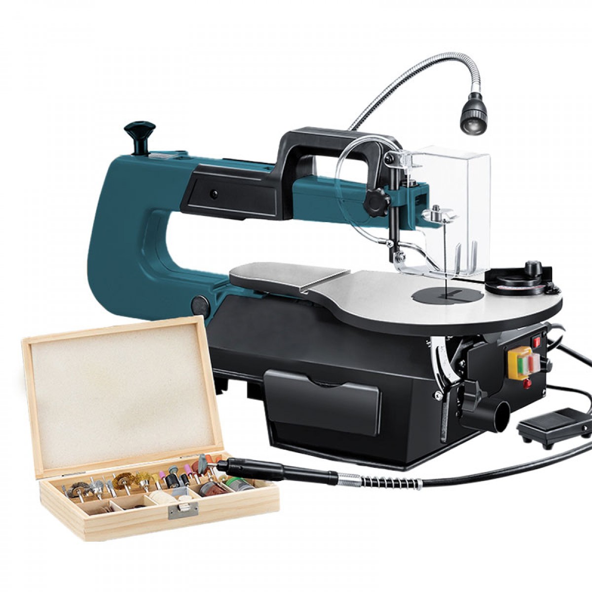 BORMANN PRO Σέγα Επιτραπέζια & Πολυεργαλείο με 103 Εξαρτήματα Φως και Διακόπτη Ποδιού (90W)