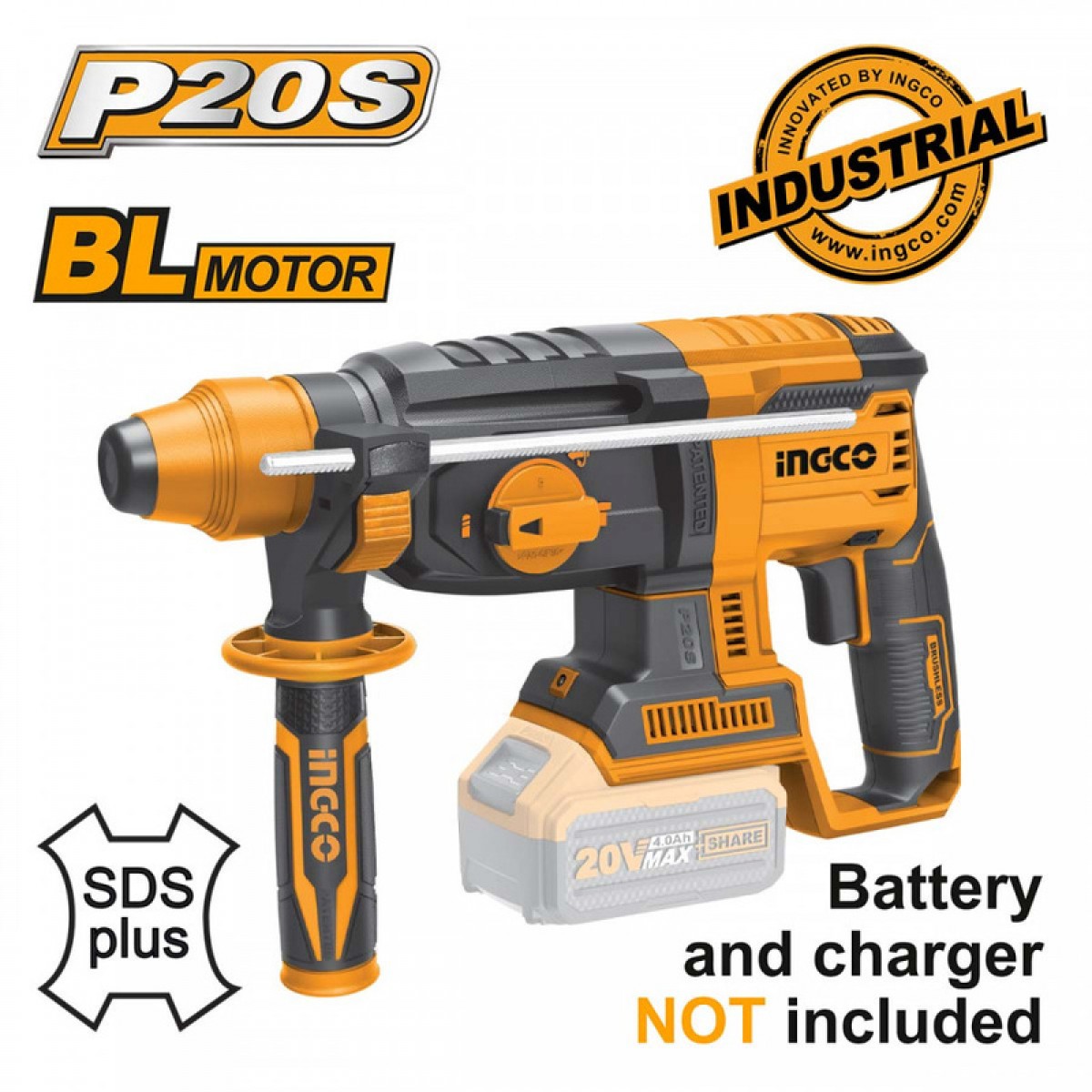 INGCO Πιστολέτο Περιστροφικό Κρουστικό Σκαπτικό Μπαταρίας 20V Li-Ion CRHLI20228 ΕΩΣ 6 ΑΤΟΚΕΣ ΔΟΣΕΙΣ