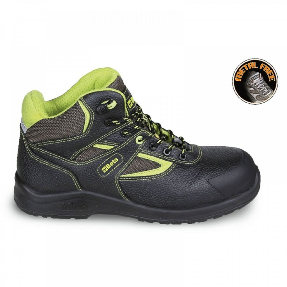 Μποτάκια δερμάτινα, υδατοαπωθητικά, με νάϊλον ενθέματα ,ενίσχυση κατά της φθοράς στην περιοχή των προστατευτικών δακτύλων και γρήγορο άνοιγμα Φόντι:Δερμάτινα, υδατοαπωθητικά, με νάϊλον ενθέματα και ενίσχυση κατά της φθοράς στην περιοχή των προστατευτικών δακτύλων Σόλα:Διπλής πυκνότητας πολυουρεθάνη Προστατευτική μύτη:Πολυμερές υλικό, 200 joules Αντιδιατρητικό:Composite ύφασμα, με κεραμική κατεργασία Πάτος:Carbon, ανατομικά διαμορφωμένο Βάρος:590 (g) S3 RS SRC