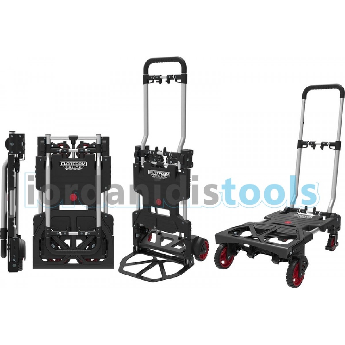 Εύκολο στη χρήση, ευέλικτο και πρακτικό καρότσι μεταφοράς. Δυνατός και ανθεκτικός σχεδιασμός. Κατασκευασμένο από ισχυρό και ανθεκτικό ατσάλι. Χρειάζονται δευτερόλεπτα για να ανοίξει και να κλείσει. Τα κύρια πλαστικά σημεία καταπόνησης είναι κατασκευασμένα από ανθεκτικό νάιλον, ενώ τα υπόλοιπα πλαστικά κομμάτια είναι από πολυπροπυλένιο. Με ειδικό σχεδιασμό καροτσάκι χειρός και πλατφόρμα σε ένα, το οποίο σας προσφέρει απεριόριστες δυνατότητες χρήσης. Η τηλεσκοπική λαβή 3 θέσεων προσαρμόζεται από 1045 έως 1525 mm για πιο ογκώδη φορτία. Πλαίσιο με έγχυση νάιλον, ανθεκτικό σαν ατσάλι αλλά ζυγίζει 30% λιγότερο. Σχεδιασμός πλαισίου I-Beam για μέγιστη αντοχή. Ανθεκτικό στα χημικά, στη διάβρωση και στη σκουριά για μεγαλύτερη διάρκεια ζωής.