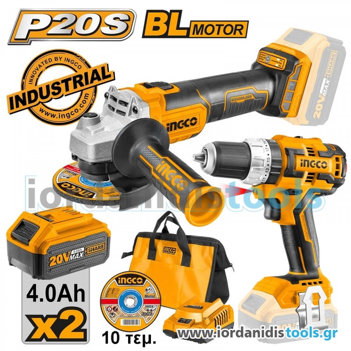 INGCO Εργαλεία Μπαταρίας 20V Li-Ion Σετ 2 τεμ.