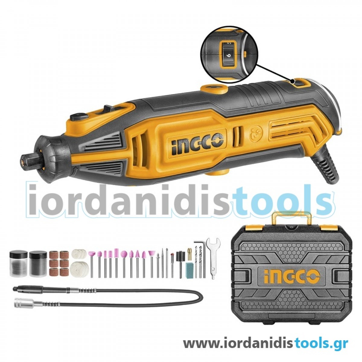 Ισχύς: 180 W Τάση: 230 V Στροφές: 5000-35000 rpm Βάρος (Κ/Μ): 0.63/2.5 KgΥλικά ΠαράδοσηςΚιτ από 100 εξαρτήματα Εύκαμπτη ντίζα Μέγγενη στήριξης ράβδου Ρυθμιστή βάθους τρυπή..