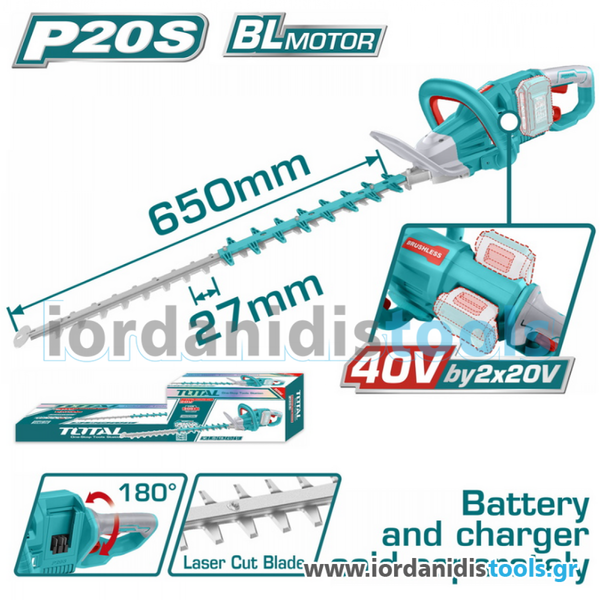 Τάση λειτουργίας: 40V (συνδυασμός 2x20V μπαταριών)