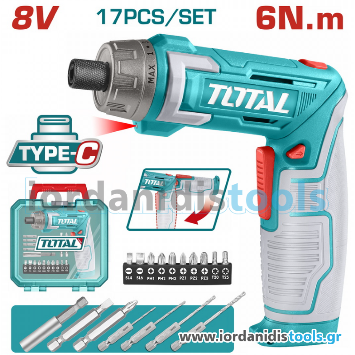 TOTAL ΕΠΑΓΓ. ΚΑΤΣΑΒΙΔΙ ΜΠΑΤ. Li-ion 8V / 1.5Ah Type-C (TSDLI08025)