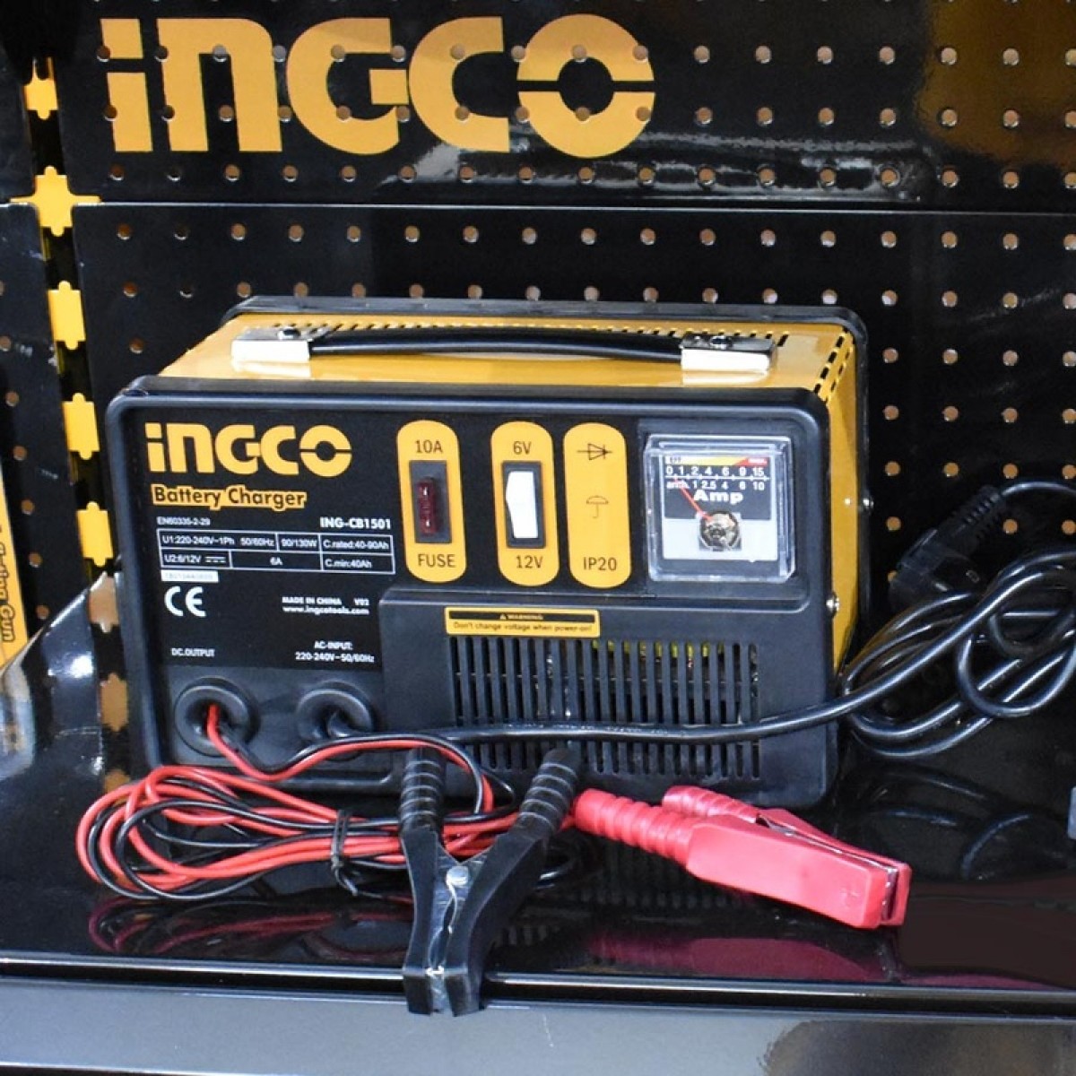 Ο φορτιστής μπαταρίας INGCO CB1501 είναι κατάλληλος για φόρτιση μπαταριών WET κλειστού τύπου 6V ή 12V από 40Αh έως 90Ah, και ιδανικός για την εκκίνηση μοτοσικλετών.