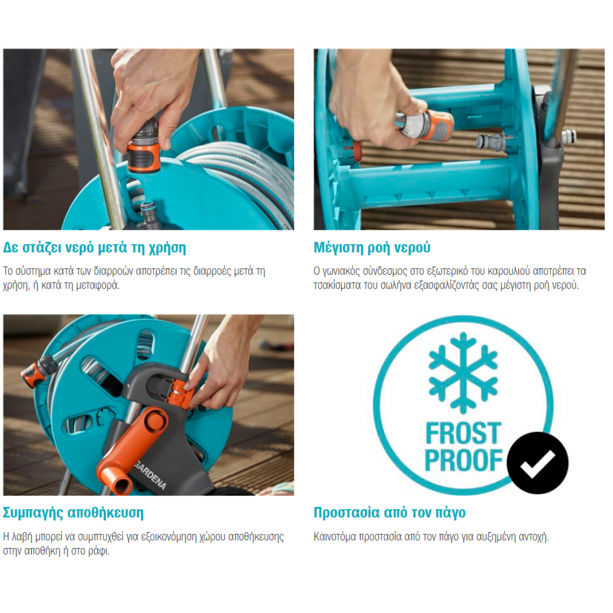 GARDENA Σετ Καρούλι Λάστιχου με Λάστιχο 20 Μέτρα και ΣυνδέσμουςΗ τηλεσκοπική λαβή και ο ειδικά πτυσσόμενος μηχανισμός προσφέροουν εξοικονόμηση χώρου αποθήκευσης. Ο περιστρεφόμενος άξονας εμποδίζ..