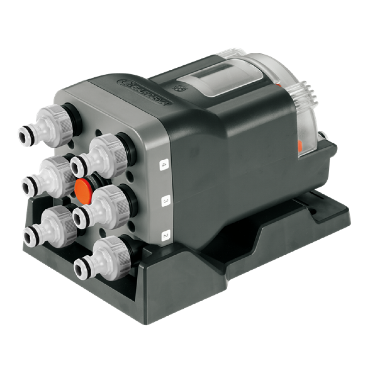 ο Αυτόματος Διανομέας Ποτίσματος της GARDENA εξασφαλίζει ότι θα ποτιστούν η μία μετά την άλλη έως 6 περιοχές του κήπου σας.