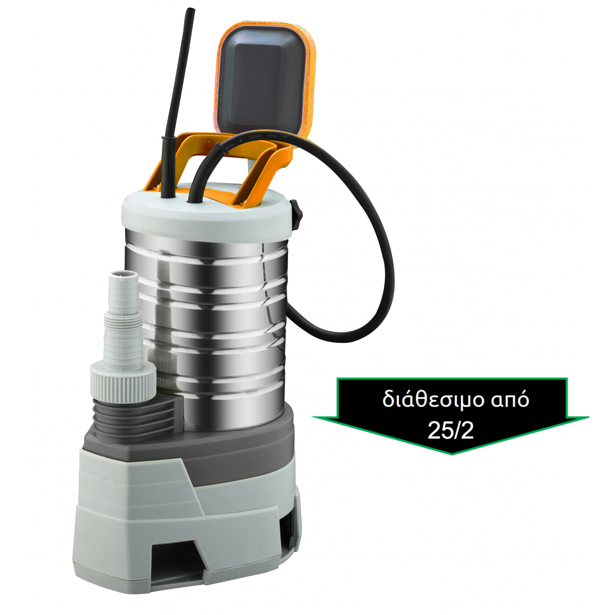 Υποβρύχια αντλία λυμάτων ανοξείδωτη 220V με κάθετο εσωτερικό ρυθμιζόμενο φλοτέρ & πολυμορφικό στόμιο εξόδου & έξοδο πλάιΙσχύς κινητήρα: 1.5HP Τάση: 220V Έξοδο: 1->1½’’ Μέγιστη παροχή: 19...