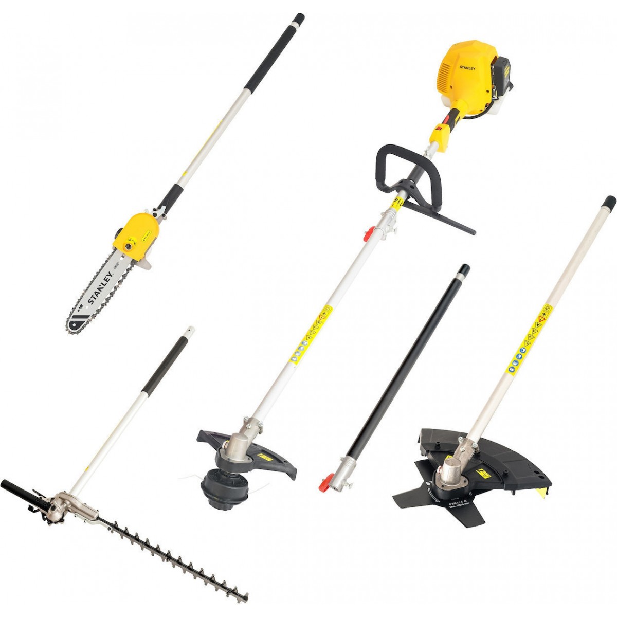 Το πολυμηχάνημα κήπου STANLEY 2χρονο, 26cc, 4 σε 1, διαθέτει 4 εναλλάξιμες κεφαλές εργαλείων, οι οποίες καθιστούν εύκολη την αλλαγή από χλοοκοπτικό γκαζόν, σε θαμνοπτικό, σε αλυσοπρίονο κονταριού και σε μπορντουροψάλιδο.