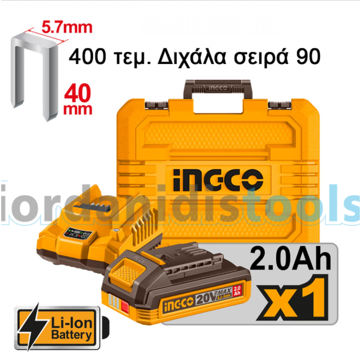 INGCO Καρφωτικό Διχάλων Μπαταρίας 20V Li-Ion +Βαλίτσα