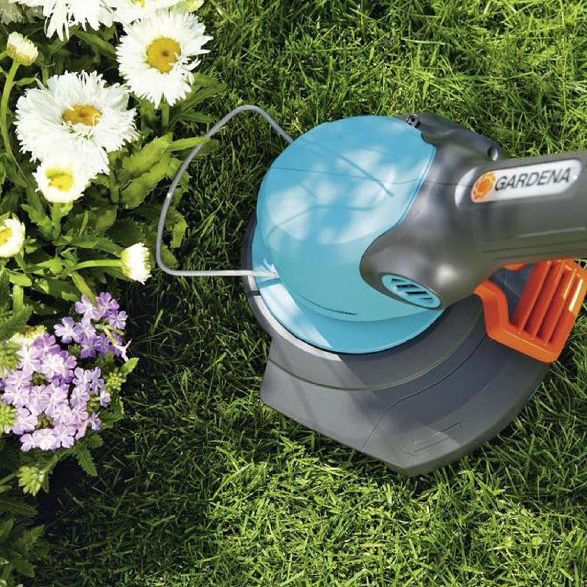 Η ρύθμιση της γωνίας λαβής στην κεφαλή του κοπτικού διευκολύνει την εργασία σε δυσπρόσιτες περιοχές, π.χ. κάτω από παγκάκια.