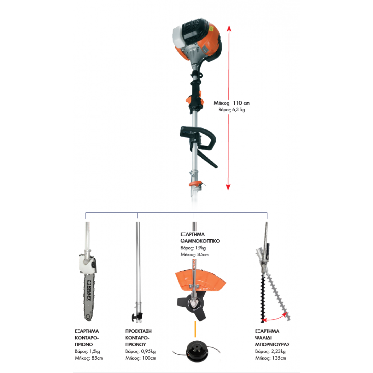 KRAFT Βενζινοκίνητο Διαιρούμενο Πολυμηχάνημα 4 σε1 52cc 691056 εως 12 ΑΤΟΚΕΣ ΔΟΣΕΙΣ